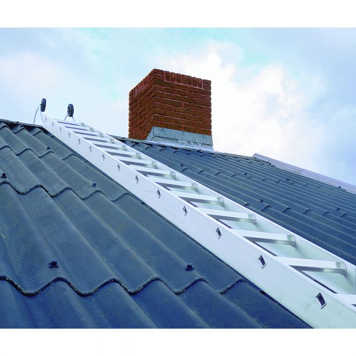 Бугель из оцинкованной стали с 2 роликами. Кровельная лестница со смонтированным крюком вкатывается по кровле до конька. Там она переворачивается и зацепляется за конек.